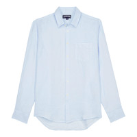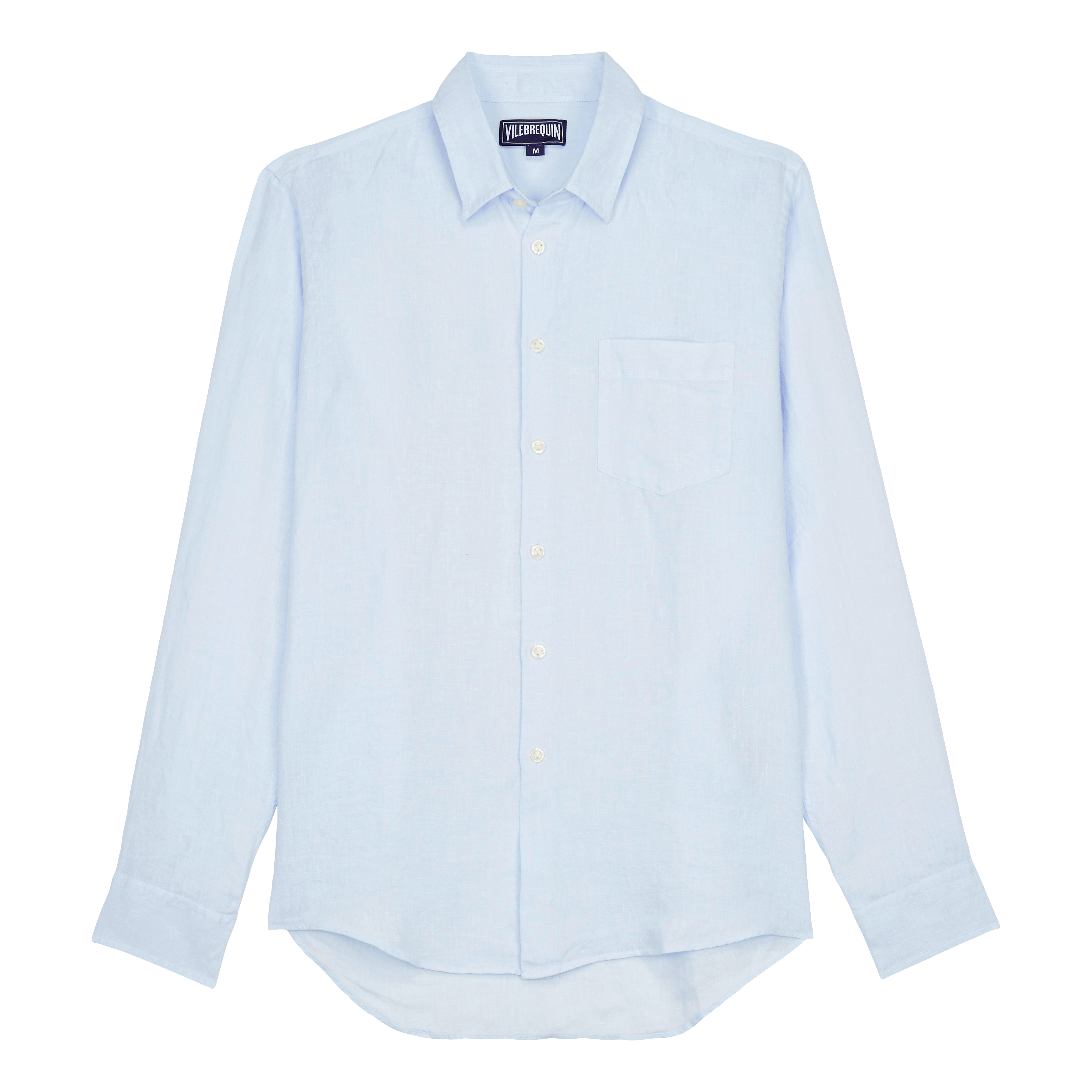 In a stylish plain colour, this long-sleeved men's shirt is made from breathable pure linen making it ideal for hot weather. - Linen shirt - Long sleeves - One chest pocket - Embroidered turtle tone on tone at the left bottom - Men Shirt - Solid Men Shirt - 100% Linen Product Information Style: Caroubis Model: WB-CRSU3U00-HOM-330 Color: SKY BLUE / BLUE