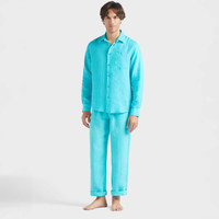 In a stylish plain colour, this long-sleeved men's shirt is made from breathable pure linen making it ideal for hot weather. - Linen shirt - Long sleeves - One chest pocket - Embroidered turtle tone on tone at the left bottom - Men Shirt - Solid Men Shirt - 100% Linen Product Information Style: Caroubis Model: WB-CRSU3U00-HOM-431 Color: DISCO GREEN / GREEN