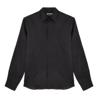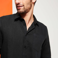 In a stylish plain colour, this long-sleeved men's shirt is made from breathable pure linen making it ideal for hot weather. - Linen shirt - Long sleeves - One chest pocket - Embroidered turtle tone on tone at the left bottom - Men Shirt - Solid Men Shirt - 100% Linen Product Information Style: Caroubis Model: WB-CRSU3U00-HOM-990 Color: BLACK / BLACK