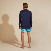 In a stylish plain colour, this long-sleeved men's shirt is made from breathable pure linen making it ideal for hot weather. - Linen shirt - Long sleeves - One chest pocket - Embroidered turtle tone on tone at the left bottom - Men Shirt - Solid Men Shirt - 100% Linen Product Information Style: Caroon Model: WB-CRSU3U00-HOM-390 Color: NAVY / BLUE