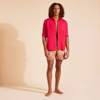 In an attractive plain Orchid colour, the Caroubis men's shirt is perfect for summer. Made from linen, it adds to a flawlessly elegant outfit and lets your skin breathe for guaranteed comfort. The 100% linen Caroubis men's shirt is available in a range of colours to suit all styles. - Linen shirt - Long sleeves - One chest pocket - Embroidered turtle tone on tone at the left bottom - Men Shirt - Solid Men Shirt - 100% Linen