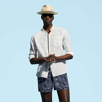 The Caroubis classic men's shirt looks just as good with Bermuda shorts, trousers or swim shorts. This essential, long-sleeved Vilebrequin piece is made from soft linen with a casual drape. Its simple cut includes a breast pocket as well as a discreet embroidered tone-on-tone turtle at the hem of the shirt. - Long sleeves - One chest pocket - Tone on tone embroidered Turtle on left bottom hem - Men Shirt - Solid Shirt - 100% Linen