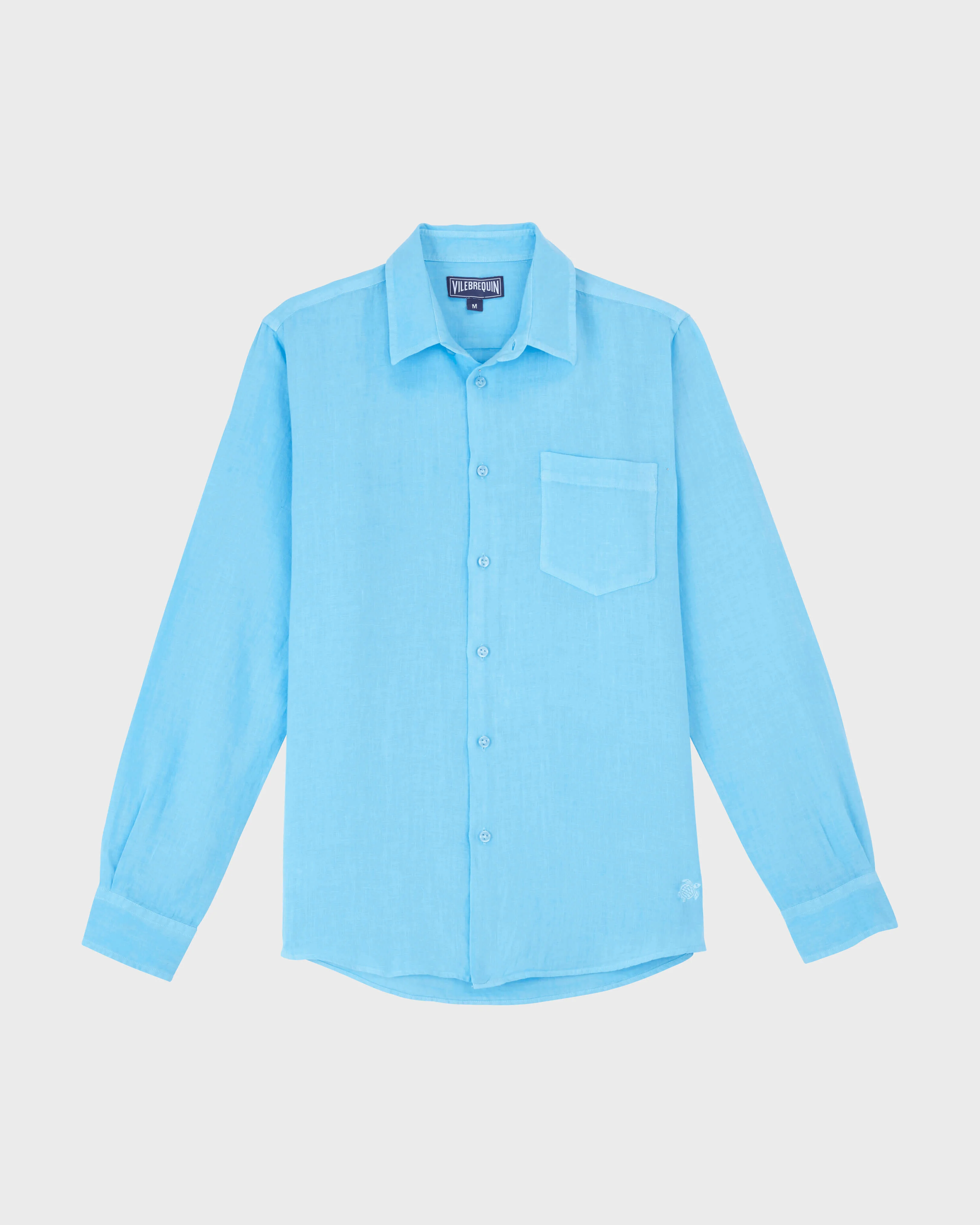 Product Detail In a stylish plain colour, this long-sleeved men's shirt is made from breathable pure linen making it ideal for hot weather. - Linen shirt - Long sleeves - One chest pocket - Embroidered turtle tone on tone at the left bottom - Men Shirt - Solid Men Shirt - 100% Linen Care To take care of your beloved Men Shirt, we advise you to follow our suggestions below: - Wash your Shirt at 30°C with similar colors. - Do not use oxygenated or chlorine based bleach/ stain removers, your Shirt won't appreciate it. - Air-dry your Shirt and do not use tumble dryer. - Regular steam or dry iron inside out, with maximum setting at 150°C. - Do not dry clean your Shirt.