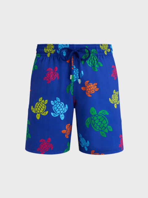 Men Long Stretch Swim Trunks Micro Ronde Des Tortues Rainbow