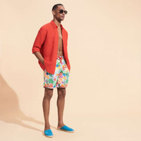 Coral, seaweed and fish take you on an unforgettable dive celebrating the richness of the sea floor. Let the lush reefs of these Okoa long swimming trunks print take you on a journey. Exceptionally comfortable men’s swim trunks - Elastic waistband with 4 lines of stitching for perfectly fitted swim trunks, drawstring adjustment - Peach finish for more softness, twill weave for more supple swim trunks - Specially treated Okoa men’s swim trunks for extra quick drying - Okoa men’s swim trunks offering comfort and a good fit thanks to inner briefs with no centre seam (100% polyamide) - Fond Marins Long men’s swim trunks Men’s swim shorts that guarantee elegance in every circumstance - Trunk length in size M: 19"/ Inseam: 8.5" - For easy water drainage, back eyelets and small back pocket opening - Okoa swim trunks with Vilebrequin engraved stainless Zamak (zinc, aluminium and magnesium alloy) drawstring tips - Hand-stitching of back pocket for perfect print alignment - Model wears size M - Model measurements: Bust 38.6”, Height 74.4”, Waist 29.9”, Hips 37.4” Composition of the Okoa men’s long swim trunks: - 100% Recycled Polyamide