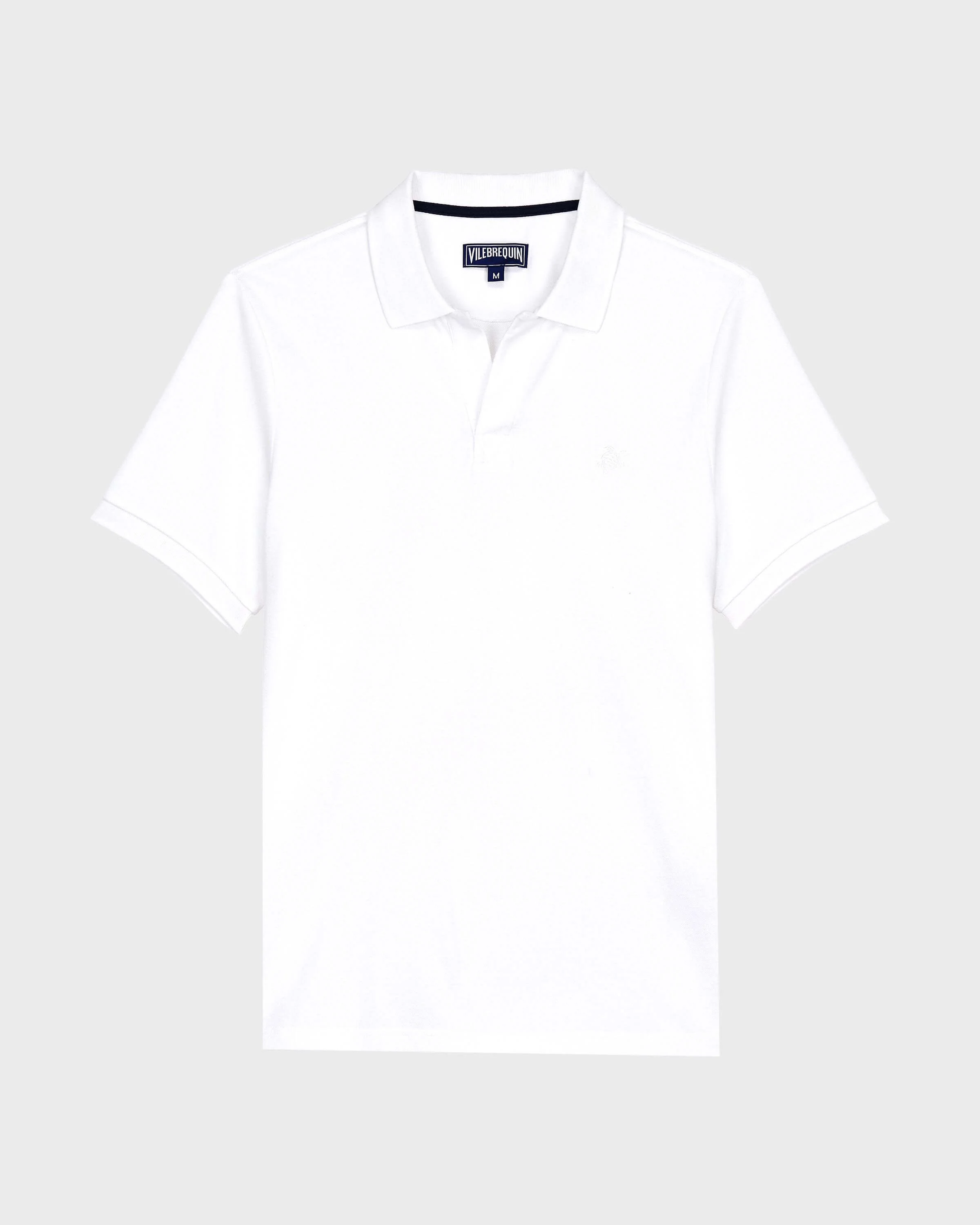 Your fashion sense will always be on the money with the Palatin men’s plain cotton pique polo shirt. This Vilebrequin wardrobe staple is both elegant and casual, with its contrasting details, classic design and buttonless placket. Your fashion sense will always be on the money with the Palan men’s plain cotton pique polo shirt. This Vilebrequin wardrobe staple is both elegant and casual, with its contrasting details, classic design and buttonless placket. A timeless and high-quality men’s polo shirt - Short-sleeved straight-cut polo shirt - Sleeves finished with a contrasting-colour ribbed trim - Men’s polo shirt embroidered with a tone-on-tone turtle on the chest - Two back eyelets reminiscent of the swim shorts and Vilebrequin logo printed under the Palan men’s polo shirt collar - Buttonless placket: an updated version of the classic men’s polo shirt - Solid Men’s polo shirt A very pleasant-to-wear men’s polo shirt - Palatin polo shirt in high-quality cotton pique A men’s polo shirt designed to last beautifully - From the thread to the eyelets, the components of this men’s polo shirt are carefully selected to guarantee optimal resistance to washes. - Composition of the Palatin men’s polo shirt: 100% Organic Cotton Product Information Style: Palan Model: PLNH2N00-010 Color: WHITE / WHITE