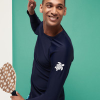 For uncompromising skin protection, the men's Regular UV Protection T-Shirt combines style with responsibility. Made from an environmentally friendly material using a polyamide fibre that recycles waste textiles, it has a placed motif on one arm. The round neckline and raglan sleeves give it a simple, timeless look. Product Information Style: Regular Model: REGC0R35-390 Color: NAVY / BLUE