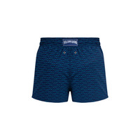 These style-defining swim shorts in stretch fabric offer the ultimate comfort in and out of the water. An elasticated waist and Vilebrequin-engraved tips on the drawstring complete the detail. - Short printed trunks for men - Elastic waistband - Drawstring, zamac tips engraved Vilebrequin - Side pockets - Side lenght in size M: 12" - Inseam in size M: 3,15" - The model is 6'0.83" and wears a M size - Men Swim shorts - Men Swim shorts Fish Net - 98% recycled polyester 2% elastane Product Information Style: Manta Model: MTACF510-390 Color: NAVY / BLUE