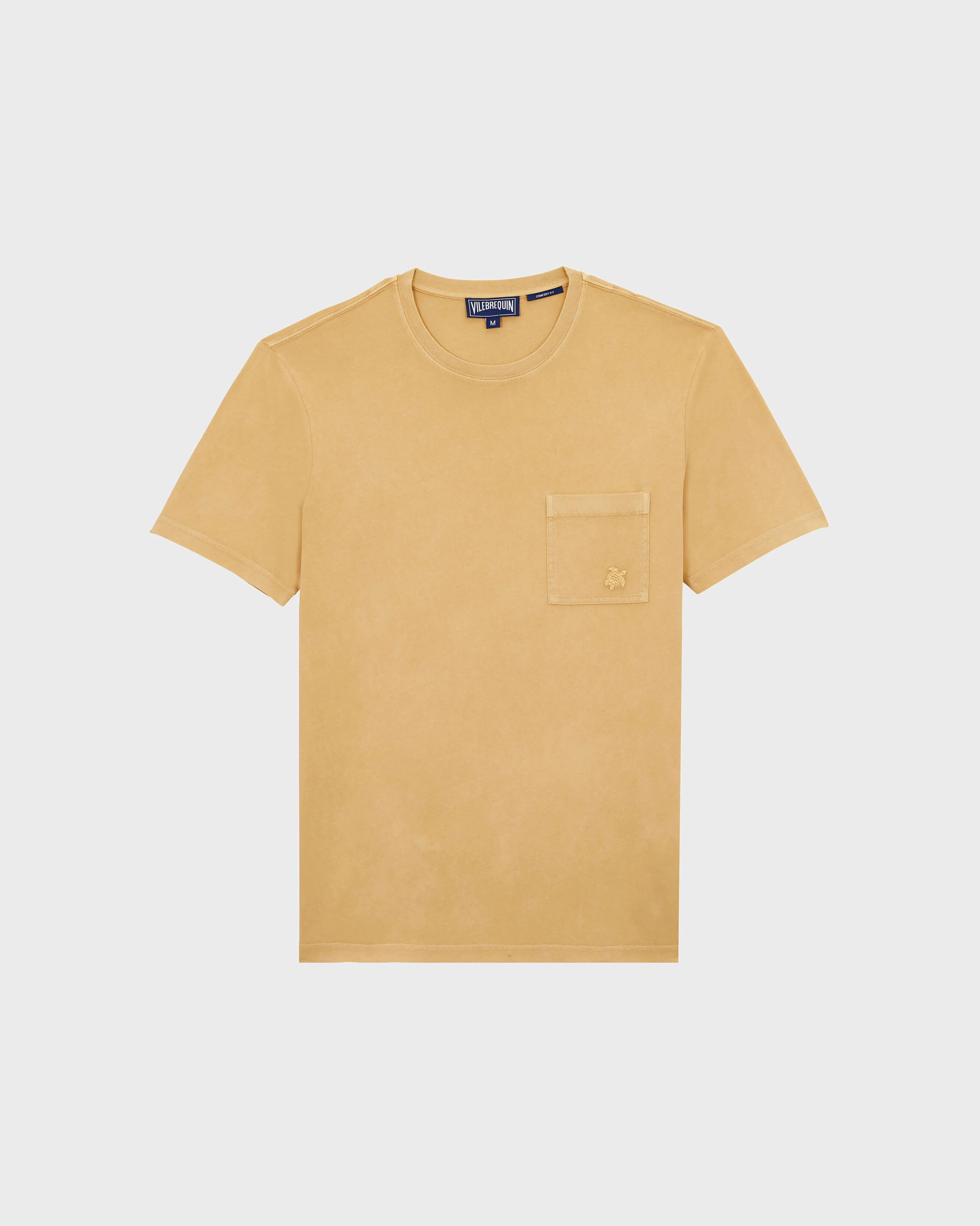 This organic cotton and natural dyed t-shirt offer a sense of casual charm with its tone-on-tone iconic turtle embroidered on the chest and solid colour. - Crew neck cotton jersey T-shirt - Short sleeves - Chest pocket - Tone on tone embroidered turtle on the pocket - Middle back length for a size M: 28.50" - Natural Colors - The model is 6'0.83" and wears a M size - Men T-shirt - Men T-shirt Natural Colors - 100% organic cotton Product Information Style: Titan Model: TTNCP103-520 Color: MOCHA / BROWN