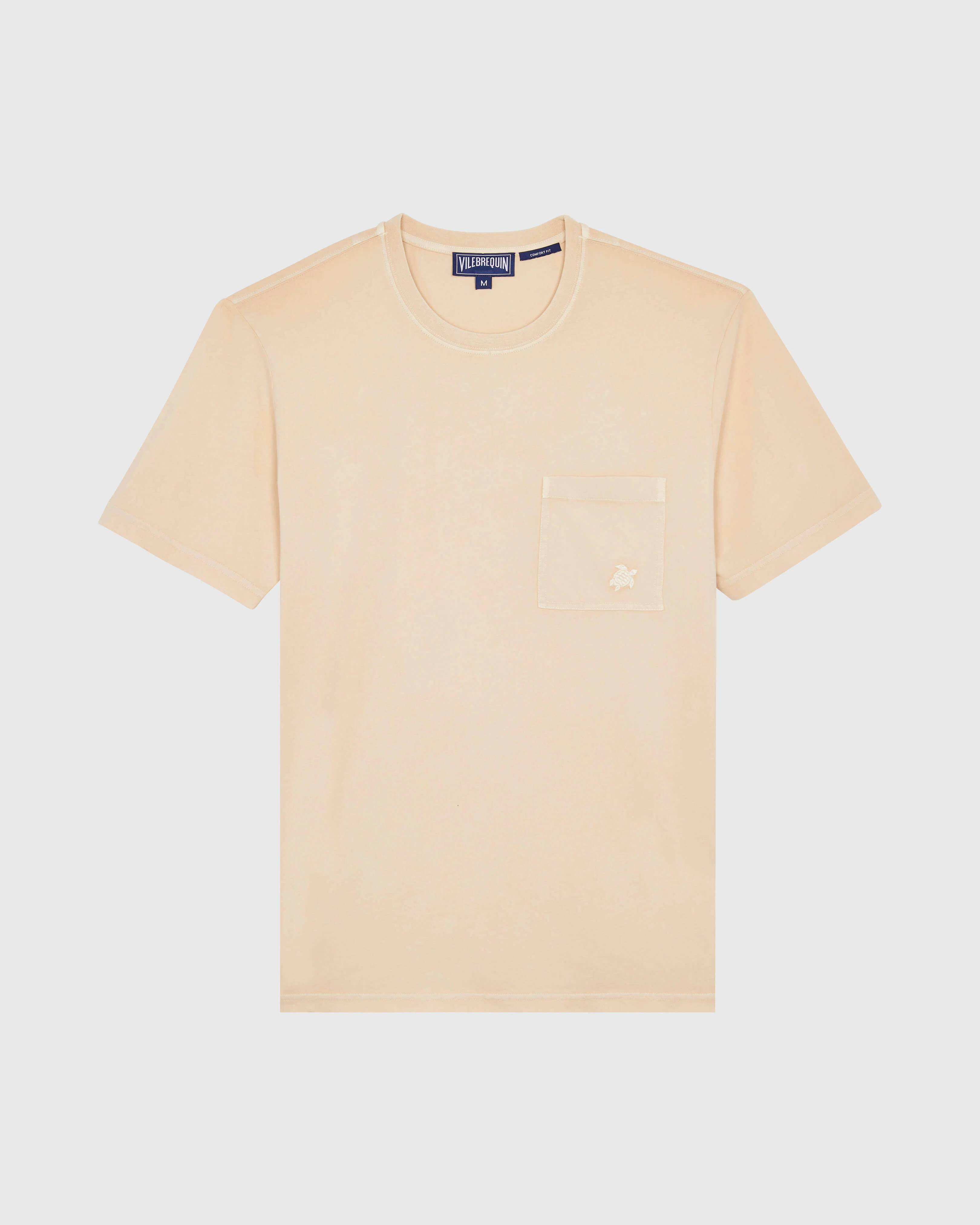 This organic cotton and natural dyed t-shirt offer a sense of casual charm with its tone-on-tone iconic turtle embroidered on the chest and solid colour. - Crew neck cotton jersey T-shirt - Short sleeves - Chest pocket - Tone on tone embroidered turtle on the pocket - Middle back length for a size M: 28.50" - Natural Colors - The model is 6'0.83" and wears a M size - Men T-shirt - Men T-shirt Natural Colors - 100% organic cotton Product Information Style: Titan Model: TTNCP103-073 Color: PINK CHAMPAGNE / BEIGE