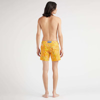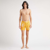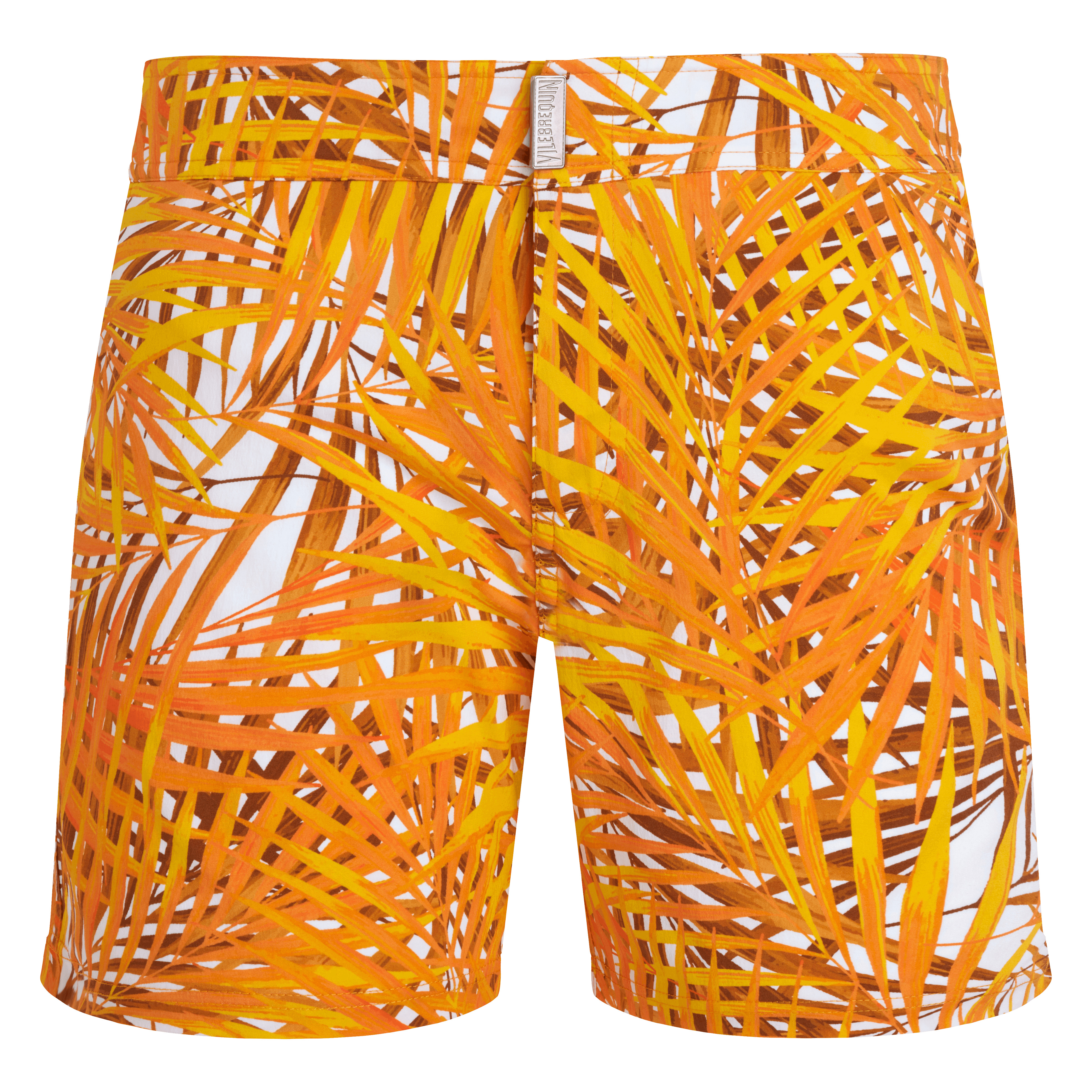 Whether cruising the Med or lying on a tropical beach, these Palm Leaves mens stretch swim trunks stand out. Short style and crafted from recycled polyamide and elastane for a sculpted fit. - Short flat belt swimsuit with Vilebrequin logo snap button and tone on tone zipper - Italian side pockets and back pocket with Velcro flap - Back seaming shape offers a more natural rear tone and curve - Shorter than the classic Moorea - Side leg length in size M: 14.7" - Inseam for size M: 5.5" - The model is 72" tall and wears a size M - Men short stretch Swim Trunks Palm Leaves - Men stretch Swim Trunks - 98% recycled polyamide 2% elastane