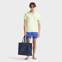 The Merle Color Block men's stretch swimming trunks, three-colour short shorts with a flattering cut and strong contrasts. - Tricolor flat waistband men swim trunks with contrasting waistband and stripes down the side - Vilebrequin logo snap button and tone on tone zipper - Men swim trunks with Italian side pockets. Piped back pocket with Velcro closure - Back seaming shape offers a more natural rear tone and curve - Shorter than the classic Moorea - Side leg length in size M: 14.7" - Inner drawstring for a perfect adjustement - Color Block Men Swim Trunks - Men Swim Trunks - 98% Polyamide - 2% Elastane Product Information Style: Merle Model: WB-MRLC4E02-HOM-613 Color: MARRAKECH / BLUE