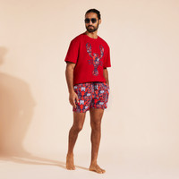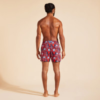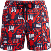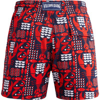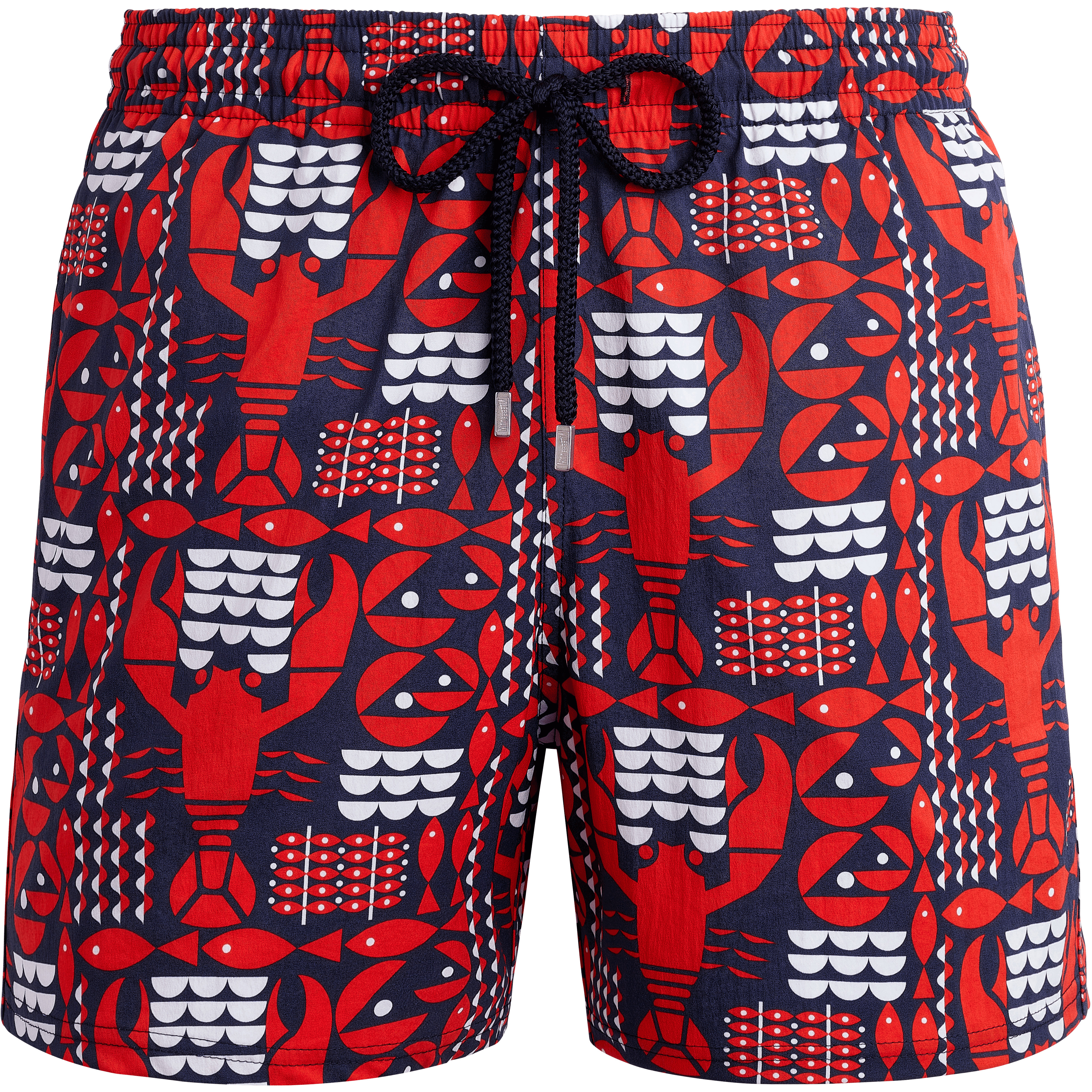 A flattering poolside essential – these swim shorts from recycled polyamide and elastane feature an elastic waistband and drawstring for added comfort. - Shorter length swim trunks with stretch fabric - Elastic waistband with drawstring and zamac tips engraved Vilebrequin - Two side pockets and one rear couture pocket with velcro flap - Two back eyelets allow water to drain and reduce the "balloon” effect when emerging from the water - Side leg length in M: 36.8 cm - slightly shorter than a Moorea classic style - The model is 180cm tall and wears a size M - Men Swim Shorts - Men Swim Shorts Graphic Lobsters - 98% Recycled Polyamide - 2% Elastane