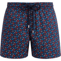 These stretch swim shorts are perfect for long summer days. Crafted from recycled polyamide and featuring a comfortable elastic and drawstring waist. - Shorter length swim trunks with stretch fabric - Elastic waistband with drawstring and zamac tips engraved Vilebrequin - Two side pockets and one rear couture pocket with velcro flap - Two back eyelets allow water to drain and avoid swim trunks from ballooning when emerging into water - Side leg length in size M: 14.5" - slightly shorter than the classic Moorea - Men Swim Trunks - Men Swim Trunks Micro Ronde Des Tortues Rainbow - 98% Recycled Polyamide - 2% Elastane