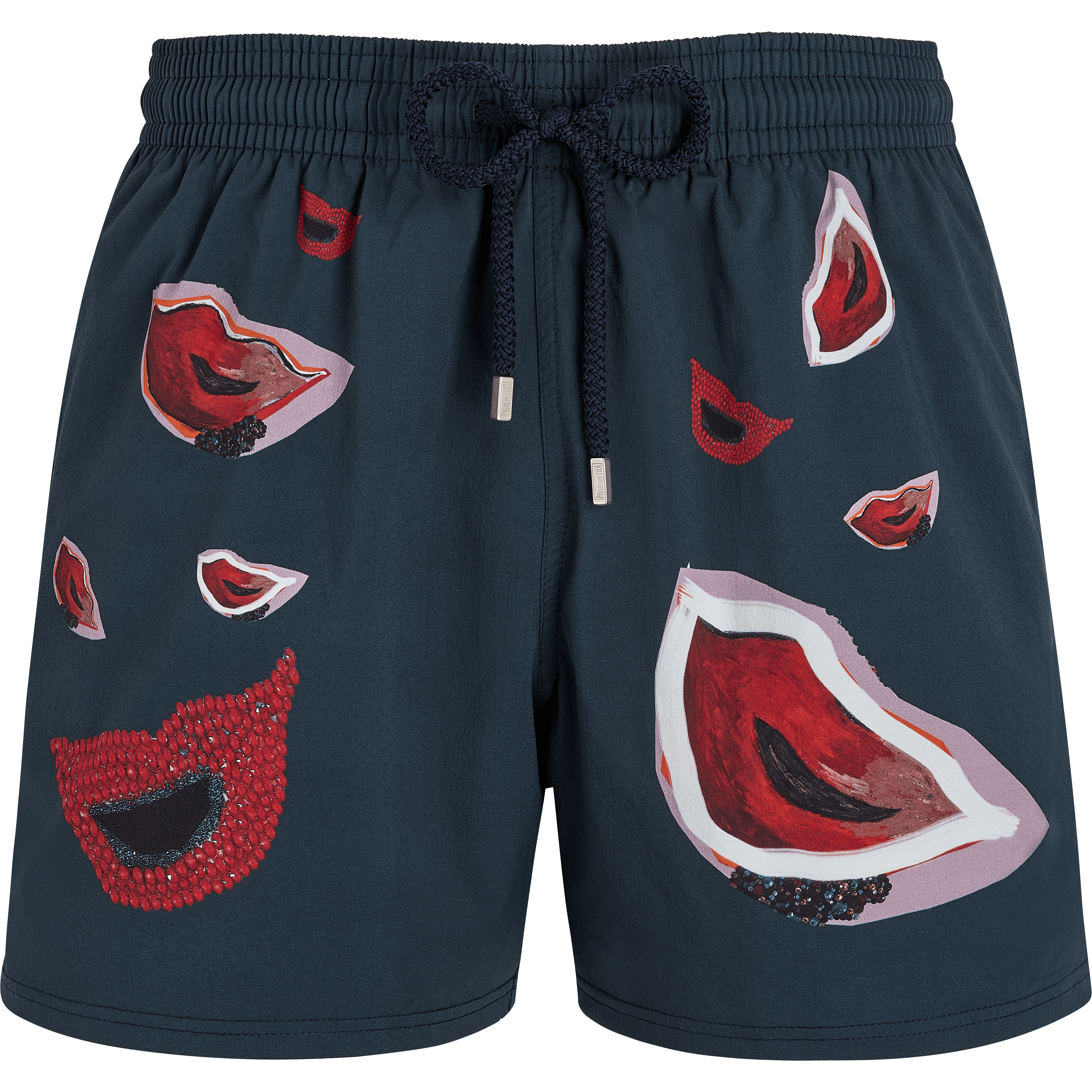 Mickalene Thomas and Racquel Chevremont founded “Deux Femmes Noires” with a very specific mission in mind: “We’d like to be a part of the larger conversation challenging contemporary art as more than just a feminist movement. We see ‘Deux Femmes Noires’ branching out to different cities around the world, putting on exhibitions and projects creating greater visibility for artists of color and queer artists." Curated by JRP|Editions for Vilebrequin, Deux femmes noires proposes a series of collages representing the Harlem Renaissance period, subverting the representation of women and inviting a polysemic reading of the signs applied to textiles. Extra comfortable men’s swim shorts - Elastic waistband with four lines of stitching for optimal fit, drawstring adjustment - These men’s swim shorts in stretch fabric are a promise of freedom - Quick-drying swimwear thanks to a specific treatment - Seamless mesh inner briefs (100% polyester) for optimal comfort - Passion stretch men’s swim shorts Chic and laid-back men’s swim shorts - Outside leg length in size M: 36.8 cm - shorter than the classic Moorea cut - Men's swim shorts with eyelets at the back designed to drain water (no ballooning) - Vilebrequin engraved drawstring tips in Zamak (a stainless alloy: zinc, aluminium and magnesium) - Vilebrequin x Deux femmes noires - Hand-placement of back pocket for perfect visual alignment with swimwear print Composition of the Moorise men’s swim shorts: - 98% Recycled Polyamide - 2% Elastane
