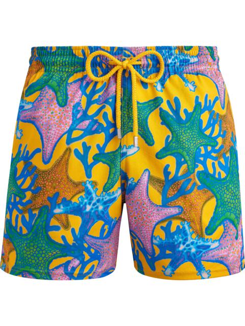Styled with a shorter leg, these swim shorts are crafted from comfortable stretch recycled polyamide and elastane – ideal for relaxed summer days. - Shorter length swim trunks with stretch fabric - Elastic waistband with drawstring and zamac tips engraved Vilebrequin - Two side pockets and one rear couture pocket with velcro flap - Two back eyelets allow water to drain and avoid swim trunks from ballooning when emerging into water - Side leg length in size M: 14.5" - slightly shorter than the classic Moorea - Men Swim Trunks - Men Swim Trunks Tortue Multicolores - 98% Recycled Polyamide - 2% Elastane