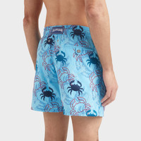 Welcome summer in these crab-print swim shorts crafted from recycled polyamide. The iconic Vilebrequin logo enhances the back, while an elasticated waistband and drawstring with metal-engraved tips complete the detail. - Embroidered swimsuit, limited numbered edition - Swim trunks with elastic waistband with drawstring and silver tips (engraving 925 certified) - Side pockets and back pocket with Turtle personnalized round snap button. Two back eyelets - Enjoy a complimentary first repair of your swim trunks, if registered within 6 months - Fully lined with water-resistant mesh lining (100% polyamide) - Side leg length in size M: 15.6" - Inseam length in size M: 5,9" - The model is 6'0.83" and wears a M size - Men Swim shorts - Men Swim shorts Embroidered Crab Ballons - 100% recycled polyamide Product Information Style: Mistral Model: MISCC416-612 Color: BLUE TOPAZ / BLUE