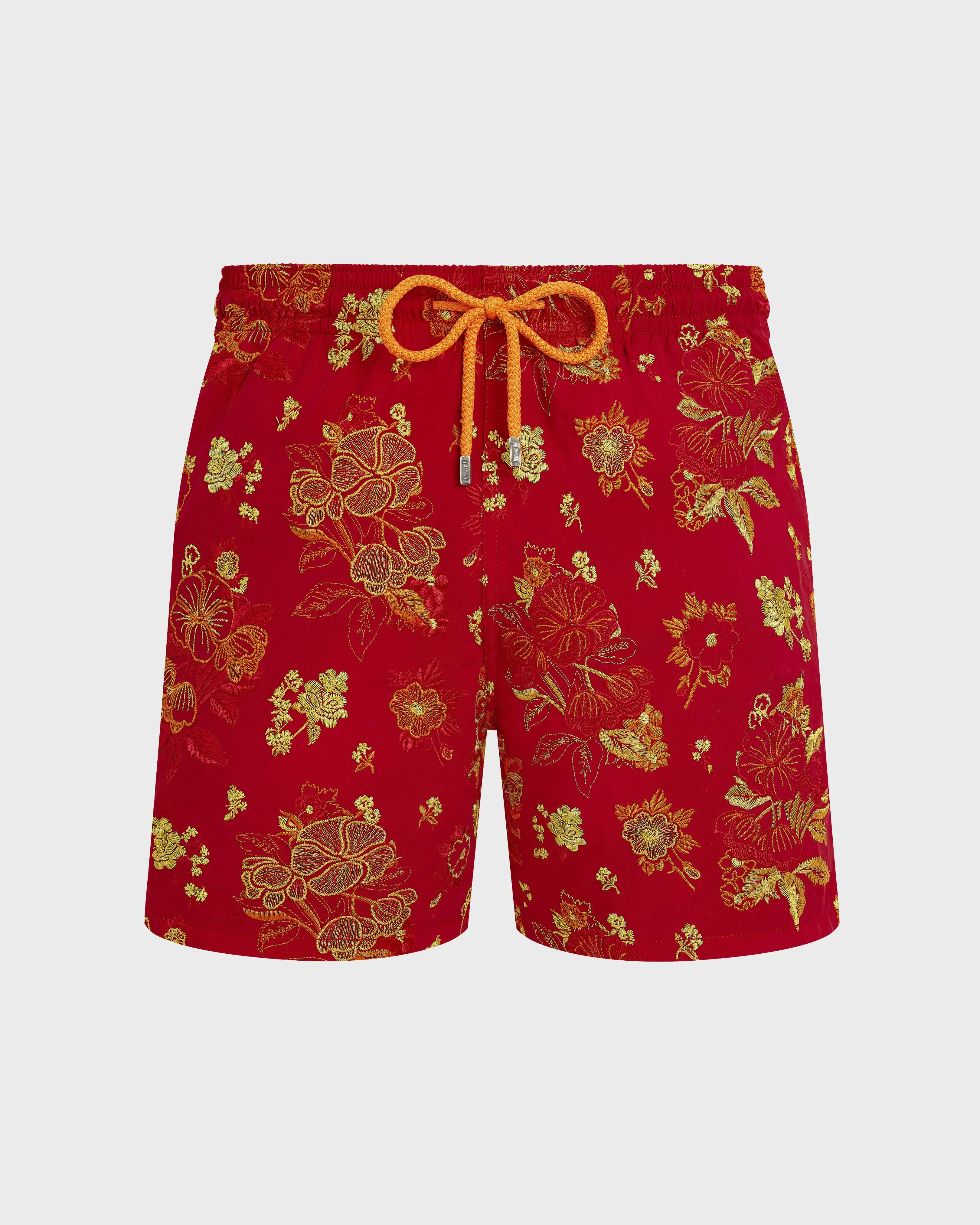 Product Detail 100% recycled polyamide A sophisticated pair of embroidered limited swim shorts for lazing by the pool or strolling along the boardwalk. Fashioned from recycled polyamide for the ultimate in comfort. - Embroidered swimsuit, limited edition, 99 pieces for the colors Crimson Purple and Lipstick Red, 199 pieces for the color Disco Green - Swim trunks with elastic waistband with drawstring and silver tips (engraving 925 certified) - Side pockets and back pocket with Turtle personnalized round snap button. Two back eyelets - Enjoy a complimentary first repair of your swim trunks, if registered within 6 months - Fully lined with water-resistant mesh lining (100% polyamide) - Side leg length in size M: 15.6" - Inseam length in size M: 5,9" - The model is 6'1 and wears a M size - Men Swim Shorts - Men Swim Shorts Flowers Care To take care of your Swim Shorts we advise you to follow our suggestions below: - Wash at 30'C - Dry line in the shade - Do not bleach - Do not tumble dry - Iron at low temperature