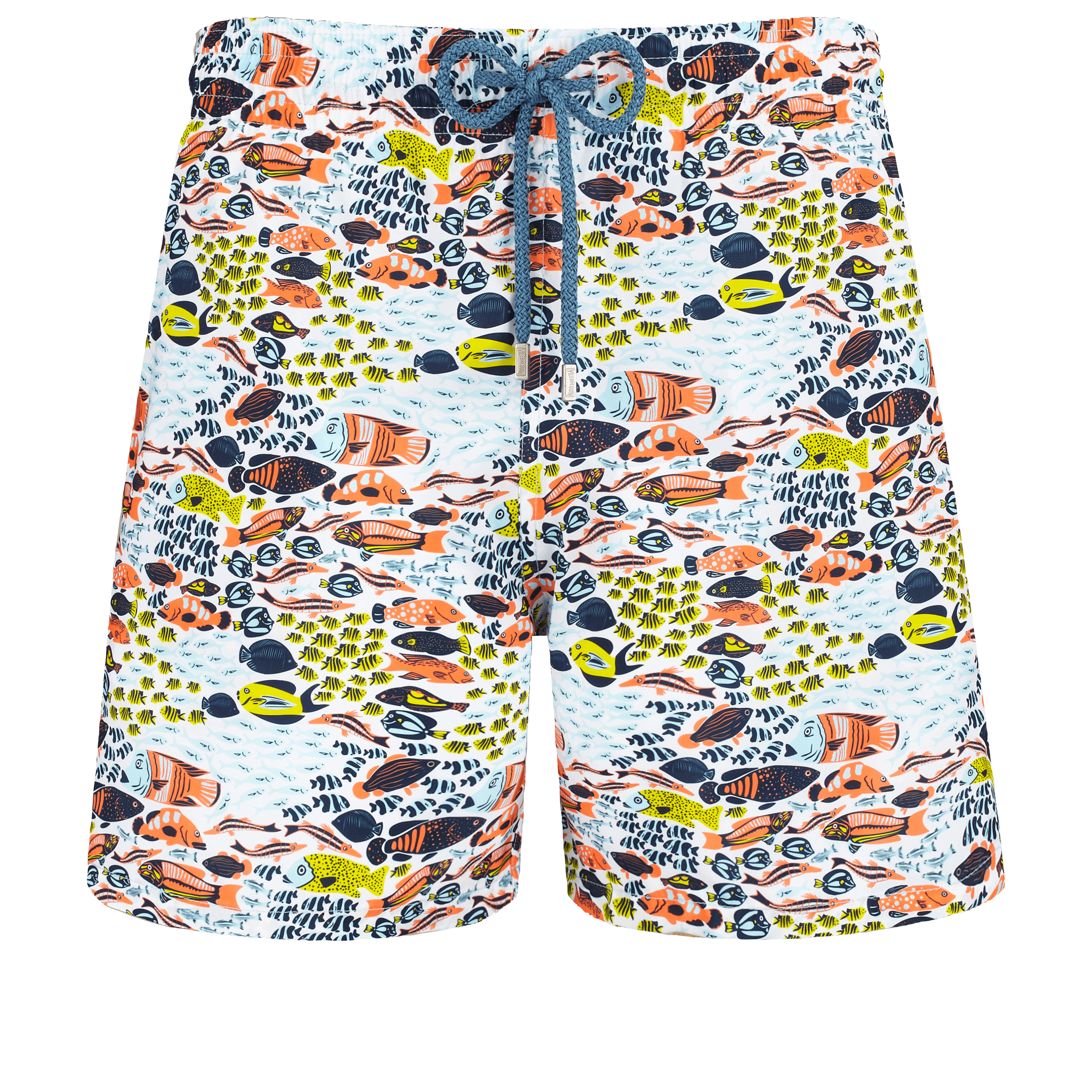 Men’s swim trunks offering great freedom of movement - Swim trunks crafted in ultra-lightweight fabric that is very pleasant to wear - Foldable into zipped back pocket for light travel - Swimwear with elastic waistband (four lines of stitching) and drawstring for perfect adjustment - Ultra-quick-drying swim trunks thanks to a specific treatment - Optimal comfort and fit thanks to inner briefs with no centre seam (100% polyamide) built into the swimwear - Fish Family ultra-light and packable men’s swim trunks Men’s swim trunks that combine elegance and refinement - In size M: Outside leg length 15.5''/ Inseam 5.5" - Men’s swim trunks featuring eyelets at the back for easy water drainage - Vilebrequin engraved stainless Zamak (zinc, aluminium and magnesium alloy) drawstring tips Composition of the Mahina men’s swim shorts: - 100% Recycled Polyester