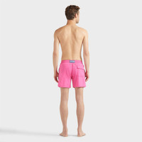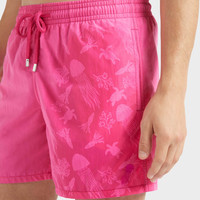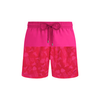 Enter the water to reveal the ocean-inspired theme on these brightly coloured swim shorts. Crafted from recycled polyamide and featuring iconic Vilebrequin-engraved tips on the drawstring. - Elastic waistband swimwear with drawstring and Zamac tips engraved Vilebrequin - Side pockets - Hand-placement of back pocket for perfect visual alignment with swimwear print - Two back eyelets allow water to drain and avoid swim trunks from ballooning when emerging into water - Fully lined with water-resistant mesh lining (100% polyamide) - Side leg length in M: 39.5 cm - Fabrics are treated for fast-dry - Men Swim shorts - Men Swim shorts Rocket Medusa - 100% recycled polyamide Product Information Style: Moorea Model: MOOCD132-167 Color: BOUGAINVILLEA / PINK
