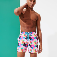 Beyond the promenade lies the beach. But what's on the walls? Turtles, of course! The iconic Vilebrequin marine creature has become a graffiti print on the Moorea 1988 Turtles Graffiti men's swim shorts. The timeless 70s cut features two side pockets and a back flap pocket, as well as two ventilation eyelets at the back. - Swim trunks with elastic waistband and drawstring with Zamac tips - Side pockets - Back pocket with Velcro flap - Two back eyelets allow water to drain and reduce the "balloon” effect when emerging from the water - Exclusive 50th anniversary external woven label - Side leg length in M: 15.6" - Inseam for size M: 5.5" - Fabrics are treated for fast-dry - Mesh lining - Men Swim trunks - 1988 Turtles Graffiti Men Swim Trunks - Sustainable approach - 100% Recycled Polyamide