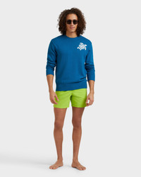 Product Detail Elegance goes minimalist with these plain two-tone Moka swimming trunks. Look for the most serene of sea creatures undulating peacefully as part of a timeless contrast. Elegance goes minimalist with these plain two-tone Moka swimming trunks. Look for the most serene of sea creatures undulating peacefully as part of a timeless contrast. - Bicolor swim trunks for men with contrasting color inside waistband and .5" of outer waistband - Elastic waistband with drawstring and Zamac tips engraved with Vilebrequin - Two side pockets and one rear pocket with velcro flap - Men's swim trunks with two back eyelets allow water to drain and reduce the “balloon” effect when emerging from the water - Embroidered Turtle on bottom of left leg - Side leg length in size M: 15.6" - Men Swim Trunks - Men Swim Trunks Solid Bicolore - Model wears size M - Model measurements: Bust 37.4”, Height 72.4”, Waist 29.5”, Hips 37” - 100% Recycled Polyamide Care To take care of your adored Men Swim Shorts, we advise you to follow our suggestions below: - Rinse your Swimwear with fresh water after each use. - When you wash your Men Swim Shorts, use a machine rather than doing it by hand, choose a delicate cycle at 30°C with a mild detergent and wash it with similar colors. - Do not use oxygenated or chlorine based bleach/ stain removers, your Swimwear won't appreciate it. - Air-dry your Men Swimwear and do not use tumble dryer. - It is not necessary to iron it, but if you do, limit the temperature to 110°C and iron it on the inside out. - Never dry clean your Swim Shorts for Men.