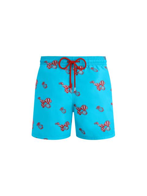 A limited edition, ocean-inspired pair of swim shorts offering a unique look. Crafted from recycled polyamide, the elastic waistband with silver-tipped drawstring gives a comfortable fit. - Men Embroidered swim trunks, limited numbered edition : 99 pieces for the color navy blue, 99 pieces for the color macaroon, 99 pieces for the color blue topaz - Swim trunks with elastic waistband with drawstring and silver tips (engraving 925 certified) - Side pockets and back pocket with Turtle personnalized round snap button. Two back eyelets - Enjoy a complimentary first repair of your swim trunks, if registered within 6 months - Fully lined with water-resistant mesh lining (100% polyamide) - Side leg length in size M: 15.6" - Inseam length in size M: 5,9" - Inseam length in M: 5.9" - Inseam length in size M: 5,9" - Men Swim trunks - Men swim trunks Embroidered Fishy Vibes - 100% recycled polyamide Product Information Style: Mistral Model: MISCC614-428 Color: MACAROON / GREEN