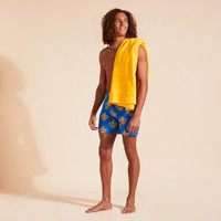 - Embroidered men swim trunks, limited production - Men swim trunks with elastic waistband with drawstring and silver tips (engraving 925 certified) - Enjoy a complimentary first repair of your swim shorts, if registered within 6 months. - Men swim trunks with side pockets and back pocket with Turtle personalised round snap button - Two back eyelets - Fully lined with water-resistant mesh lining (100% polyamide) - Side leg length in size M: 15.6" - Fleur de Poulpe Men Swim Trunks - Men Swim Trunks - 100% Recycled Polyamide