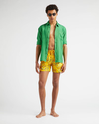 A sophisticated pair of Hibiscus print swim trunks for lazing by the pool or strolling along the boardwalk. Fashioned from recycled polyamide for the ultimate in comfort. - Embroidered men swimsuit, limited quantities, 99 pieces for the color the Bora Bora Blue, Yellow Corn and Flax Flower Blue, 199 pieces for the color Midnight Blue - Swim trunks with elastic waistband with drawstring and silver tips (engraving 925 certified) - Side pockets and back pocket with Turtle personnalized round snap button. Two back eyelets - Enjoy a complimentary first repair of your swim trunks, if registered within 6 months - Fully lined with water-resistant mesh lining (100% polyamide) - Side leg length in size M: 15.6" - The model is 72.8" tall and wears a size M - Men Swim Trunks Hibiscus - Limited Edition - Men Swim Trunks - 100% recycled polyamide Product Information Style: Mistral Model: MISBC601-115 Color: CORN / YELLOW