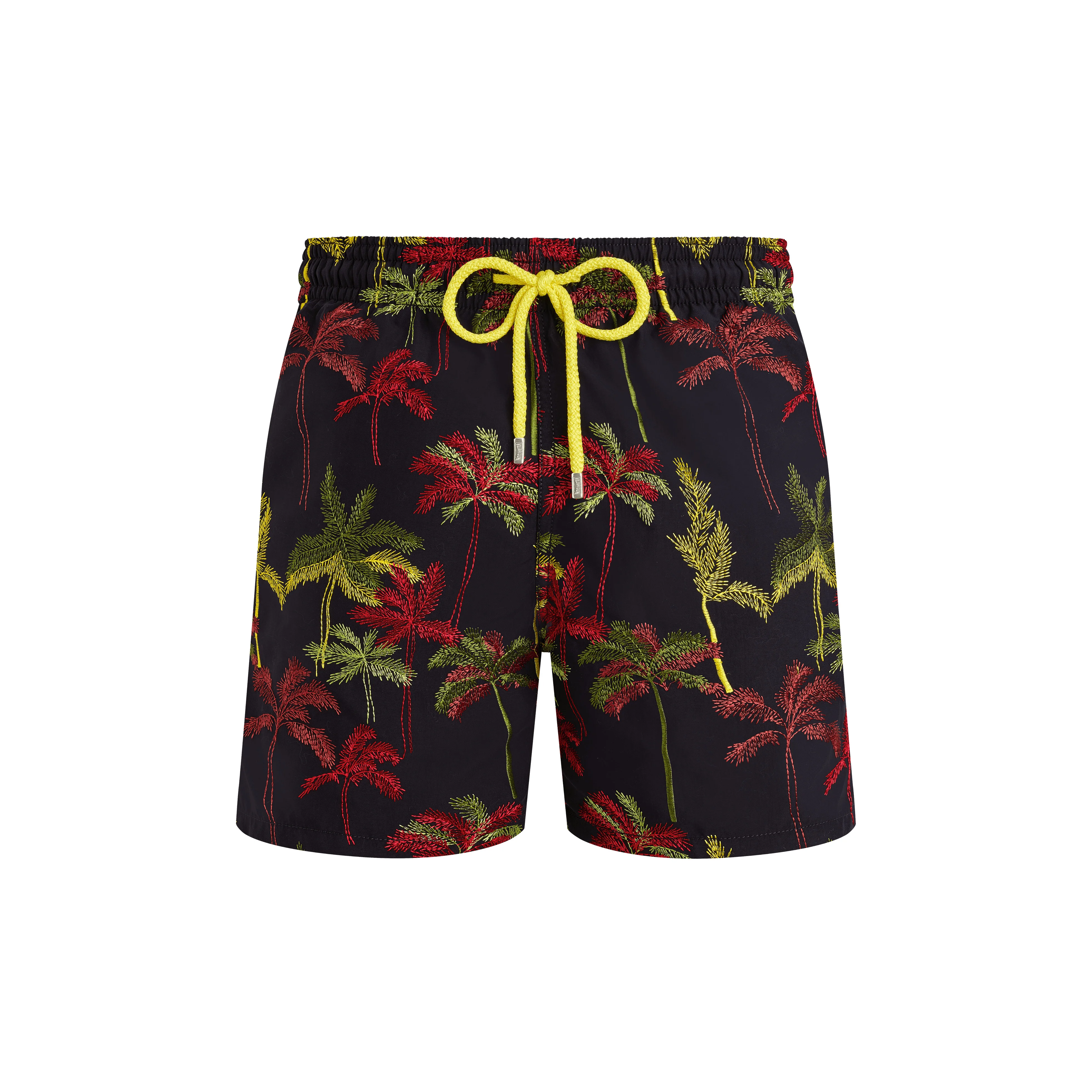 A pair of striking swim trunks with a comfortable elasticated waist and drawstring featuring Vilebrequin-engraved tips for a stylish twist. Crafted from recycled polyamide. - Embroidered swimsuit, limited numbered edition,99 pieces for the color olivier, 99 pieces for the color moka, 99 pieces for the color black - Swim trunks with elastic waistband with drawstring and silver tips (engraving 925 certified) - Side pockets and back pocket with Turtle personnalized round snap button. Two back eyelets - Enjoy a complimentary first repair of your swim trunks, if registered within 6 months - Fully lined with water-resistant mesh lining (100% polyamide) - Side leg length in size M: 15.6" - Inseam length in size M: 5,9" - The model is 6'0.83" and wears a M size - Men Swim shorts - Men Swim shorts Embroidered Palm Offset - 100% recycled polyamide Product Information Style: Mistral Model: MISCC623-990 Color: BLACK / BLACK