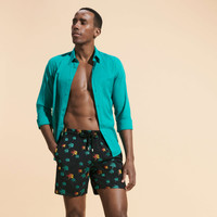 Keep your eyes peeled, as the fish that parade on these Mistral Piranhas embroidered swimming trunks have nothing in common. They have a keen bite and an elegant slim silhouette that is really enthralling. - Embroidered fabric, numbered limited edition to 213 copies - Swim trunks for men with elastic waistband with drawstring and silver tips (engraving 925 certified) - Side pockets and back pocket with Turtle personnalized round snap button - Men's swim trunks with two back eyelets - Side leg length in size M: 15.6" - Men Swim Trunks - Men Swim Trunks Piranhas - Model wears size M - Model measurements: Bust 38.6”, Height 74.4”, Waist 29.9”, Hips 37.4” - 100% Recycled Polyamide