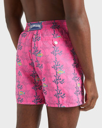 Welcome summer in these limited edition and numbered recycled polyamide seaweed print men's swim shorts. Featuring an elastic waistband and a drawstring with silver tips to complete the detail. - Embroidered swim trunks, 199 pieces for the color Bougainvillier, 199 pieces for the color Macaroon, 199 pieces for the color Marrakech - Swim trunks with elastic waistband with drawstring and silver tips (engraving 925 certified) - Side pockets and back pocket with Turtle personnalized round snap button - Two back eyelets - Enjoy a complimentary first repair of your swim trunks, if registered within 6 months - Fully lined with water-resistant mesh lining (100% polyamide) - Side leg length in size M: 15.6" - Inseam length in M: 5.9" - Inseam length in size M: 5,9" - The model is 6' 1.5" and wears a M size - Men Swim trunks shorts - Men Swim trunks Embroidered Seaweed - 100% recycled polyamide Product Information Style: Mistral Model: MISCC528-167 Color: BOUGAINVILLEA / PINK