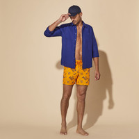 The Mistral Vatel men's swim trunks celebrate French culinary traditions. With their limited-edition embroidered fish, they're a homage to a legendary French chef. - Embroidered men swim trunks, limited production of 65 pieces - Men swim trunks with elastic waistband with drawstring and silver tips (engraving 925 certified) - Men swim trunks with side pockets and back pocket with Turtle personnalized round snap button - Two back eyelets - Fully lined with water-resistant mesh lining (100% polyamide) - Side leg length in size M: 15.6" - Vatel Men Swim Trunks - Men Swim Trunks - 100% Recycled Polyamide