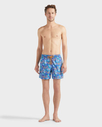 A stylish pair of swim shorts in a fishy print featuring an elasticated waistband and drawstring embellished with Vilebrequin-engraved tips for an elegant finish. - Elastic waistband swim trunks with drawstring and zamac tips engraved Vilebrequin - Side pockets - Hand-placement of back pocket for perfect visual alignment with swimwear print - Two back eyelets allow water to drain and avoid swim trunks from ballooning when emerging into water - Fully lined with water-resistant mesh lining (100% polyamide) - Side leg length in size M: 15.6" - Inseam length in size M: 5,9" - The model is 6'2.41" and wears a M size - Men Swim trunks - Men Swim trunks Fishy vibes - 100% recycled polyamide Product Information Style: Moorea Model: MOOCB114-613 Color: MARRAKECH / BLUE