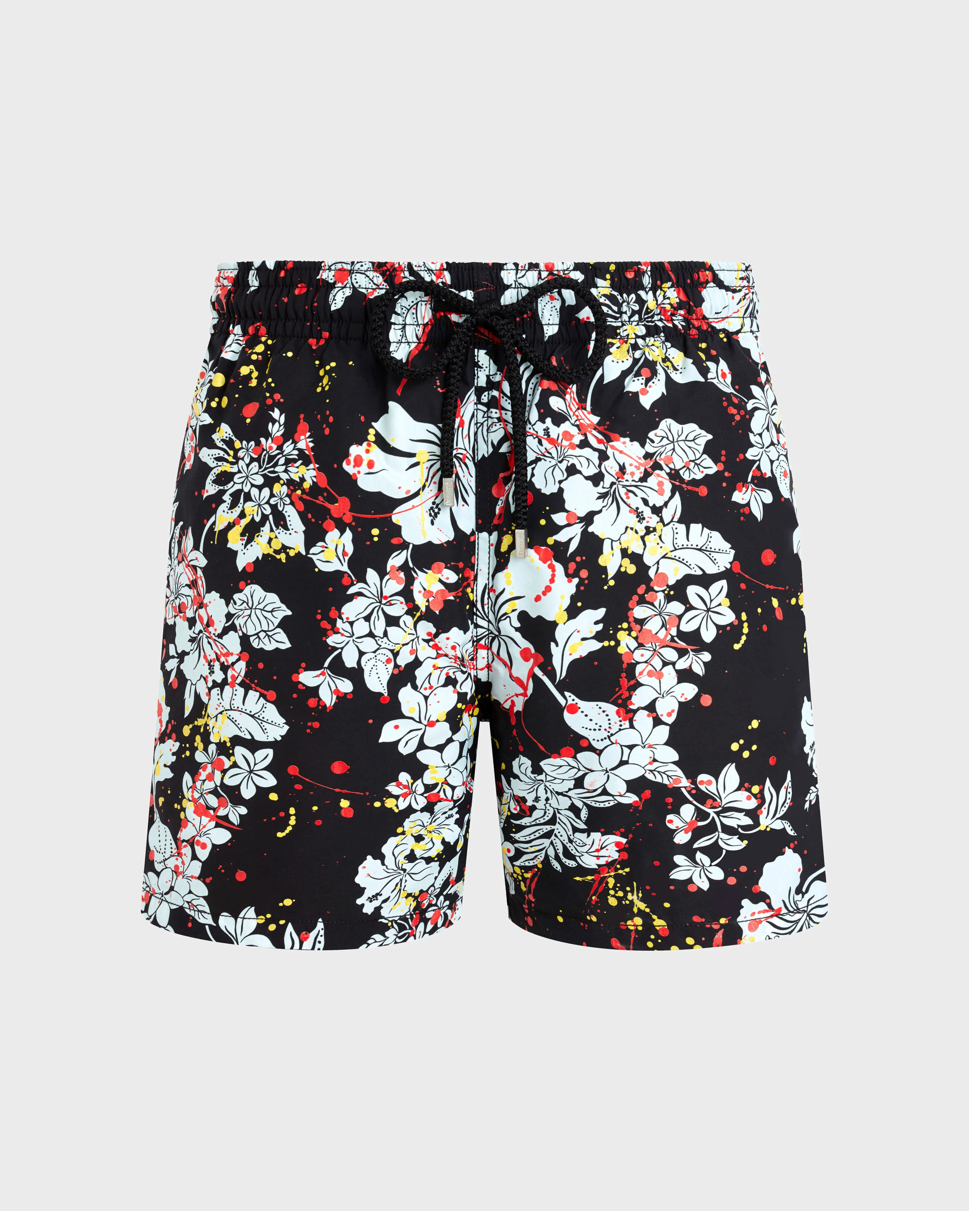 Palm Angels and Vilebrequin once again redefine the codes of beachwear with their Spring-Summer 2025 collaboration. This third chapter seamlessly fuses iconic silhouettes with a bold, contemporary edge. Vivid tropical prints, from Spray Paint to Splash motifs, energize the collection with modern flair. Signature branding is artfully woven throughout, transforming the logo into a true design statement. - Men Elastic waistband swim trunks with drawstring and zamac tips engraved Vilebrequin - Side pockets - Hand-placement of back pocket for perfect visual alignment with swimwear print - Two back eyelets allow water to drain and avoid swim trunks from ballooning when emerging into water - Fully lined with water-resistant mesh lining (100% polyamide) - Side leg length in size M: 15.6" - Inseam length in size M: 5,9" - The model is 6'2.41" and wears a M size - Men Swim trunks - Men Swim trunks Flower Splash - VBQ x Palm Angels - 100% recycled polyamide Product Information Style: Moorea Model: MOOZB110-990 Color: BLACK / BLACK