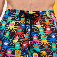 Saturday night fever enlivens the frenzied octopuses on these Okorise Multicoloure Medusa men's Bermuda swim shorts. Covered in colourful tentacles, these three-pocket stretch shorts are ideal for any activity, whether it’s on a surfboard or on the dance floor. - Long stretch swim trunks with elastic waistband with drawstring and Zamac tips engraved Vilebrequin - Side pockets - Back pocket with Velcro flap - Two back eyelets allow water to drain and reduce the "balloon” effect when emerging from the water - Side leg length in size M: 19" - Inseam for size M: 8" - Model wears size M - Model measurements: Bust 39.4”, Height 75”, Waist 32.3”, Hips 39” - Men Swim Trunks - Multicolore Medusa Men Swim Trunks - 98% Polyamide - 2% Elastane