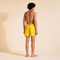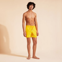 The casual elegance of Vilebrequin is embodied in the perfect lines of our Moorea men's swim trunks, a timeless style icon with drawstring, pockets and eyelets. Swim trunks for men seeking comfort and quality - Swim trunks with elastic waistband (four lines of stitching) and drawstring for perfect adjustment - Twill weave for supple swim trunks peach finish for more softness - Quick-drying - Optimal comfort and fit thanks to inner briefs with no center seam (100% polyamide) built into the swim trunks - uni Men’s swim trunks Men’s swim trunks that flatter every silhouette - Size M: 15.51" leg length / 5.5" inseam - Men's swim trunks with 2 eyelets at the back to prevent ballooning - Vilebrequin engraved stainless zamak (zinc, aluminium and magnesium alloy) drawstring tips - Hand-stitching of back pocket for perfect alignment with swim trunks print - Model wears size M - Model measurements: Height 73.6”, Bust 41.3”, Waist 33”, Hips 37.4” Composition of the Moorea men’s swim trunks - 100% Recycled Polyamide