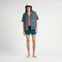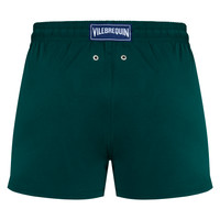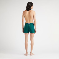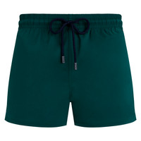 Swim even further with the Man plain men's swim shorts. Designed for maximum freedom of movement, these short and stretchy shorts have elasticated waistband and a cord with engraved tips. It is made from recycled plastics recovered from the oceans. - Short length swim trunks for men with elastic waistband. Navy drawstring and navy Zamak tips engraved with Vilebrequin - Two side slits - Swim trunks for men without side and back pockets - Two back eyelets - Side leg length in size M: 12.2" - Inseam for size M: 2.25" - Men Swim Trunks - Men Swim Trunks Solid - 98% Recycled Polyester - 2% Elastane Product Information Style: Man Model: MANH9E00-474 Color: IVY / GREEN