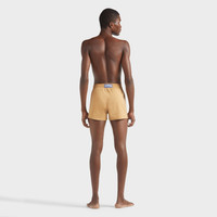Swim even further with the Man plain men's swim shorts. Designed for maximum freedom of movement, these short and stretchy shorts have elasticated waistband and a cord with engraved tips. It is made from recycled plastics recovered from the oceans. - Short length swim trunks for men with elastic waistband. Navy drawstring and navy Zamak tips engraved with Vilebrequin - Two side slits - Swim trunks for men without side and back pockets - Two back eyelets - Side leg length in size M: 12.2" - Inseam for size M: 2.25" - Men Swim Trunks - Men Swim Trunks Solid - 98% Recycled Polyester - 2% Elastane Product Information Style: Man Model: MANH9E00-520 Color: MOCHA / BROWN