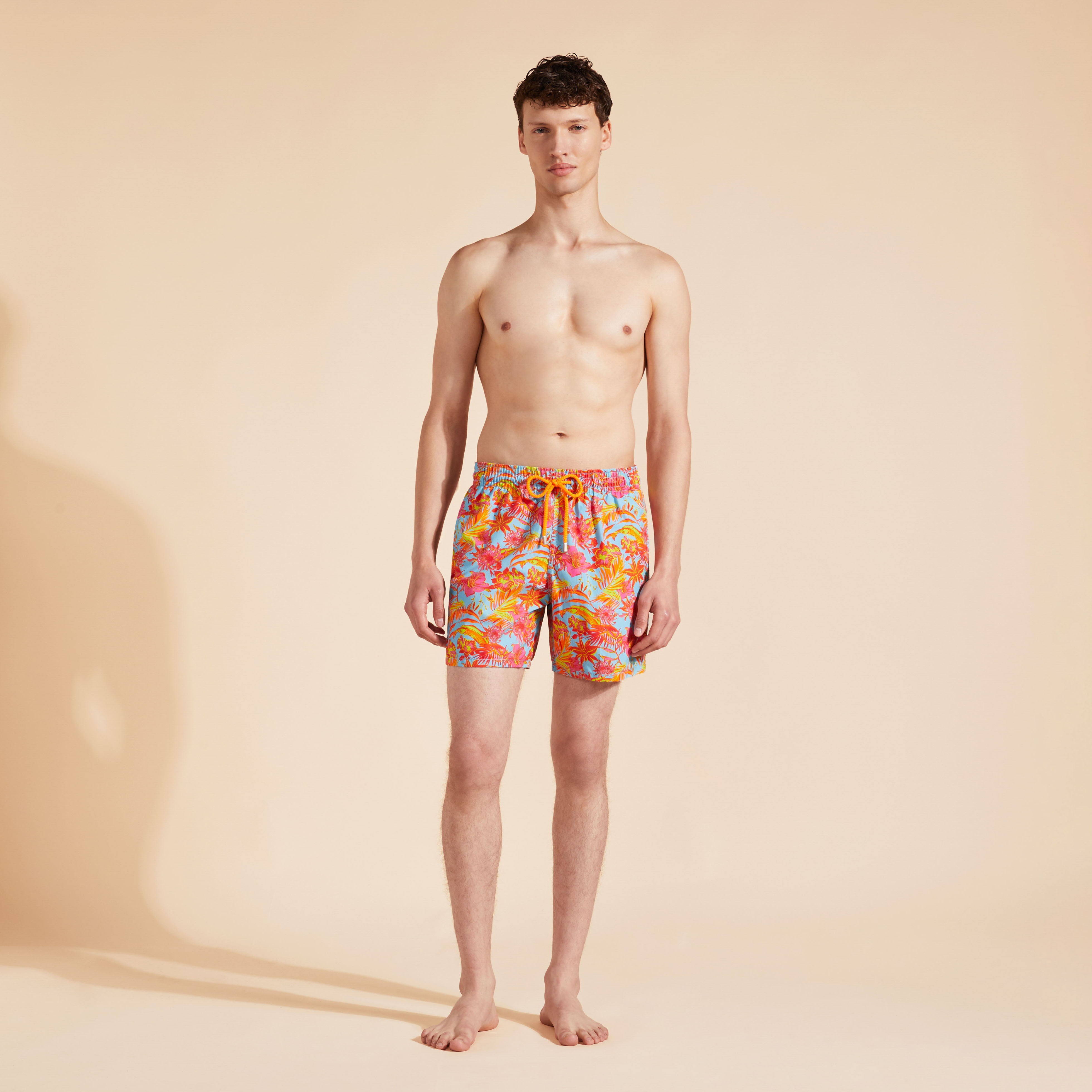 An eye-catching exotic floral print fashioned from recycled polyamide creates the perfect swim shorts for the beach and poolside. Finished with an elastic waist and drawstring for comfort. - Elastic waistband swim trunks with drawstring and zamac tips engraved Vilebrequin - Side pockets - Hand-placement of back pocket for perfect visual alignment with swimwear print - Two back eyelets allow water to drain and avoid swim trunks from ballooning when emerging into water - Fully lined with water-resistant mesh lining (100% Polyamide) - Side leg length in size M: 15.6" - Men Swim Trunks - Men Swim Trunks Tahiti Flowers - 100% Recycled Polyamide