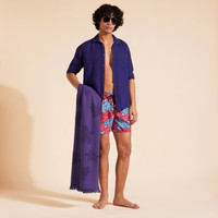 Adorned with tiny turtles, these printed swim trunks feature an elastic waistband and drawstring for the ultimate fit - perfect to brighten the summer wardrobe. - Elastic waistband swim trunks with drawstring and zamac tips engraved Vilebrequin - Side pockets - Hand-placement of back pocket for perfect visual alignment with swimwear print - Two back eyelets allow water to drain and avoid swim trunks from ballooning when emerging into water - Fully lined with water-resistant mesh lining (100% Polyamide) - Side leg length in size M: 15.6" - Men Swim Trunks - Men Swim Trunks Turtles Sequins - 100% Recycled Polyamide