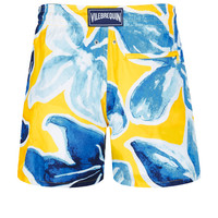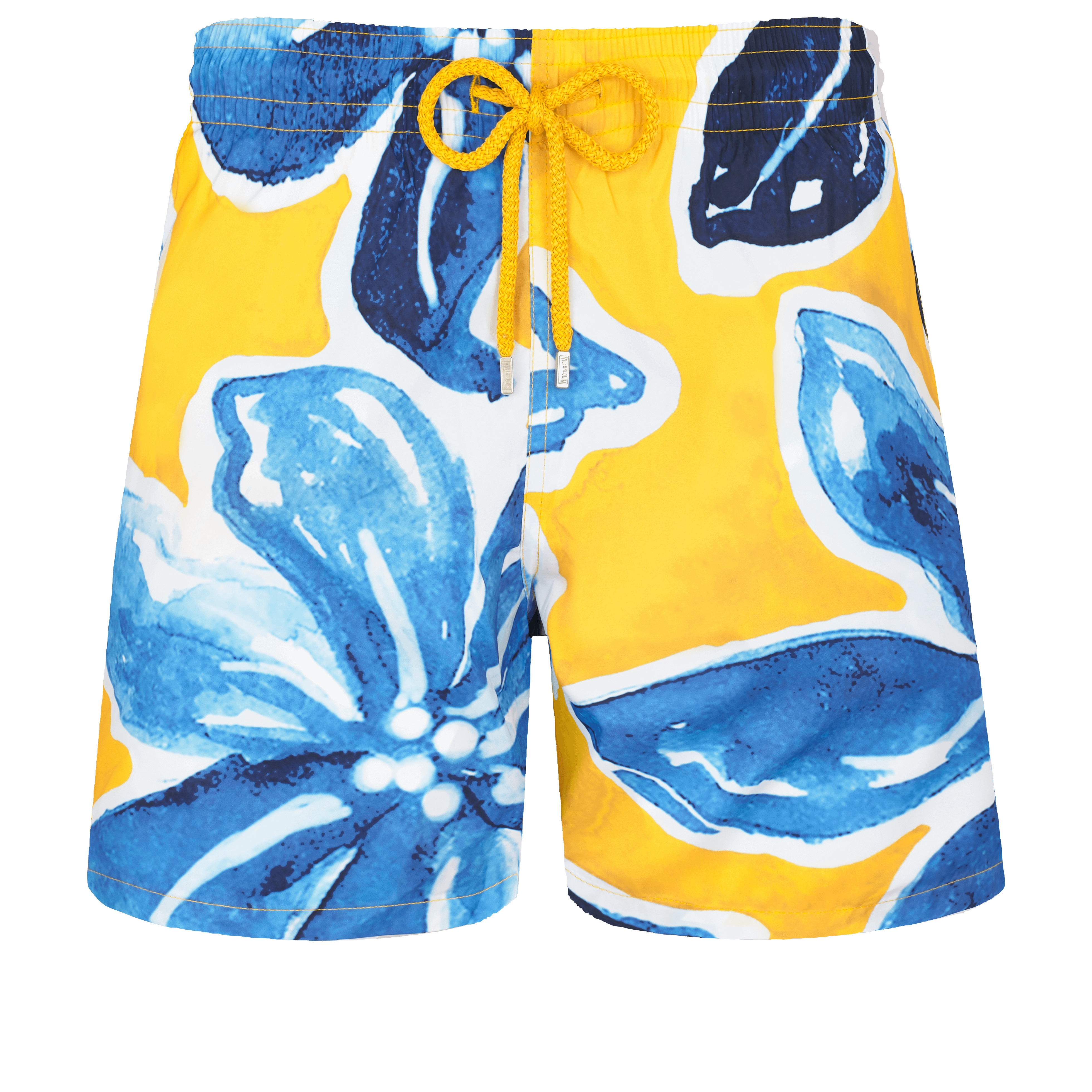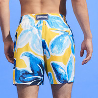 Dream big with these superlight Mahina swimming trunks. The tiaré flowers appear in close-up on the Macro Raiatea print, evoking the sunny landscapes of Tahiti. Swim trunks for men seeking comfort above all else - Swim trunks crafted in special, extra lightweight material for an airy feeling - Foldable into zipped back pocket to be slipped into any bag - Thanks to their fully elastic waistband with four lines of stitching and their drawstring, the Mahina trunks offer optimal comfort. - Ultra-quick-drying swim trunks thanks to a specific treatment - Optimal comfort and fit thanks to inner briefs with no centre seam (100% polyamide) built into the swimwear - Macro Raiatea ultra-light and packable men’s swim trunks Men’s swim trunks that flatter every silhouette - Men’s swim trunks measurements taken from size M: Length 15.5" / Inseam 5.5" - Two back eyelets for anti-ballooning water drainage - Finishing touch: Vilebrequin engraved drawstring tips in stainless alloy (Zamak: zinc, magnesium and aluminium) - Model wears size M - Model measurements: Bust 37.8”, Height 71.6”, Waist 29.1”, Hips 36.2” Composition of the Mahina men’s swim trunks: - 100% Recycled Polyester