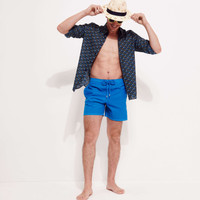 Choose a lightweight style with the Mahina men's swimsuit in plain eco-friendly material. Its fabric made from recycled plastic bottles is both responsible and ultra-lightweight. These classic men swim trunks with an elasticated waistband can be folded up into the back pocket for easy storage and transport. - Ultra-light fabric packable men swimwear into the zipped back pocket to become a pouch with a Vilebrequin rubber label - Elastic waistband with drawstring and Zamac tips engraved Vilebrequin - Men swim trunks with two side pockets - Men swim trunks with two back eyelets - Side leg length in M: 15.5" - Men swimwear - Solid men swimwear - 100% Recycled polyester