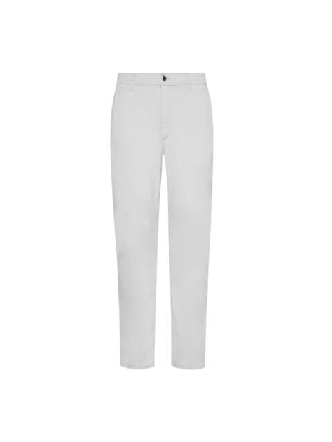 An elegant pair of trousers for men crafted in Tencel satin for comfortable wear. Featuring Italian pockets and the iconic Vilebrequin turtle on the rear. - Chino-style pants for men - Stretch Tencel cotton fabric with a dry-touch feel - 5 belt loops - Italian pockets - 2 welt back pockets - Vilebrequin turtle embroidered under the left back pocket - The model is 6'0.83" and wears a 33 size - Men Pants - Men Pants Tencel Satin - 53% tencel 44% cotton 3% elastane Product Information Style: Langley Model: LNGAX175-010 Color: WHITE / WHITE