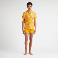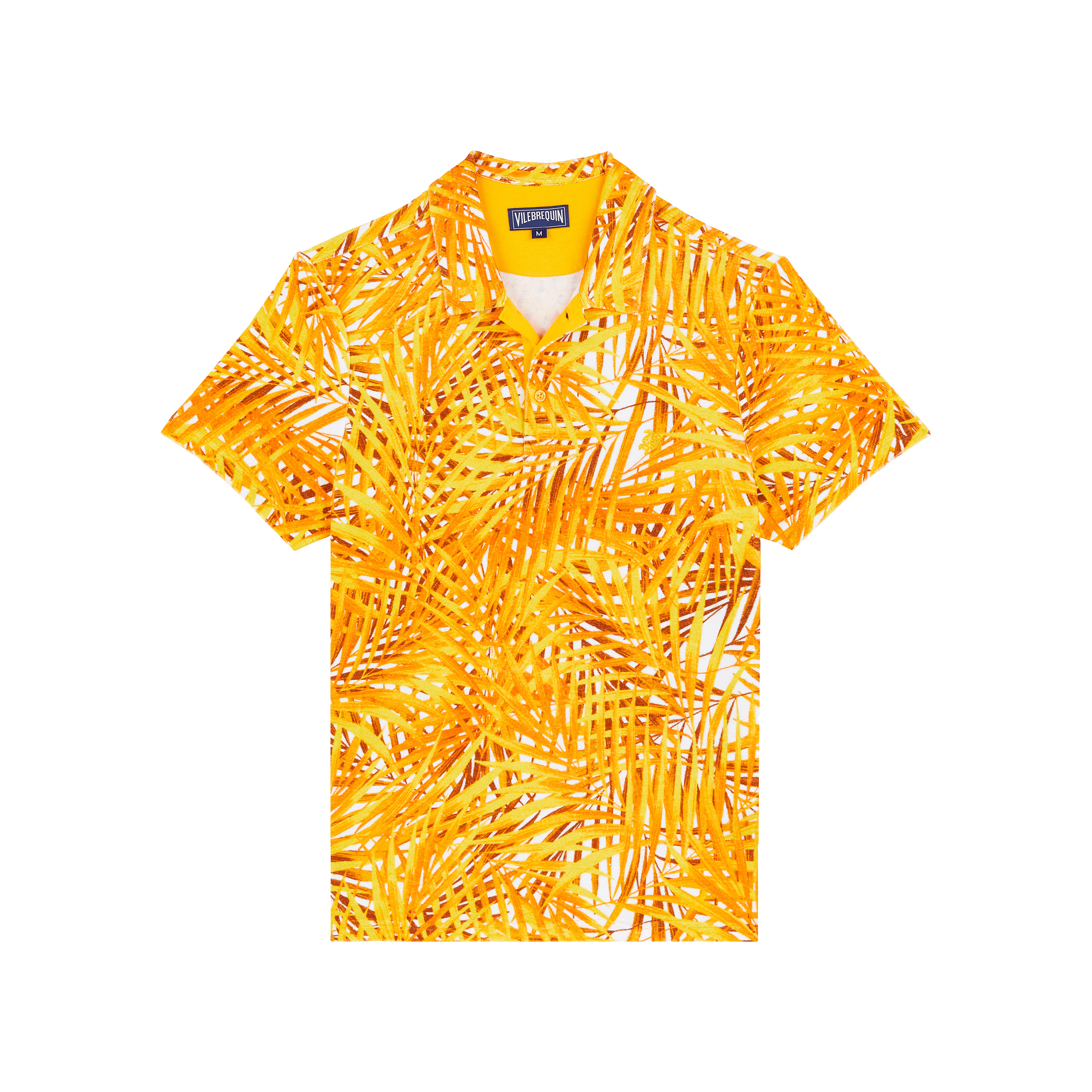 A men's polo-shirt with a difference. Exotic palm leaves adorn this organic cotton and polyamide iconic style polo for a unique look that promises to turn heads. - Men Terry Polo Shirt - 3 buttons on front placket - Embroidered tone on tone on the chest - Middle back length for a size M: 26.77" - The model is 73.6" tall and wears a size M - Men Short Sleeves Polo Palm Leaves - Men Polo - 80% organic cotton 20% polyamide Product Information Style: Phoenix Model: PHEBQ205-188 Color: MANGO / ORANGE