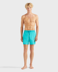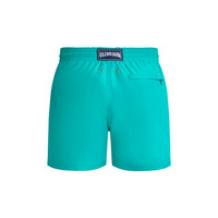 Welcome summer in these lightweight recycled polyester men swim shorts that conveniently fold into the back pocket to take up less luggage space. - Ultra light-weight fabric - Elastic waistband with drawstring and zamac tips engraved Vilebrequin - Two side pockets - Two back eyelets allow water to drain and avoid swim trunks from ballooning when emerging into water - Travel-friendly swimsuit folds completely into the back pocket - Side leg length in size M: 15.6" - Men Swim Trunks - Men Swim Trunks Solid - 100% Recycled Polyester Product Information Style: Mahina Model: MAHAI100-431 Color: DISCO GREEN / GREEN
