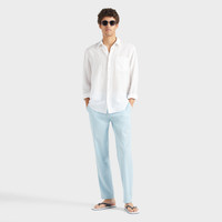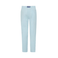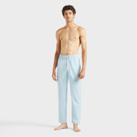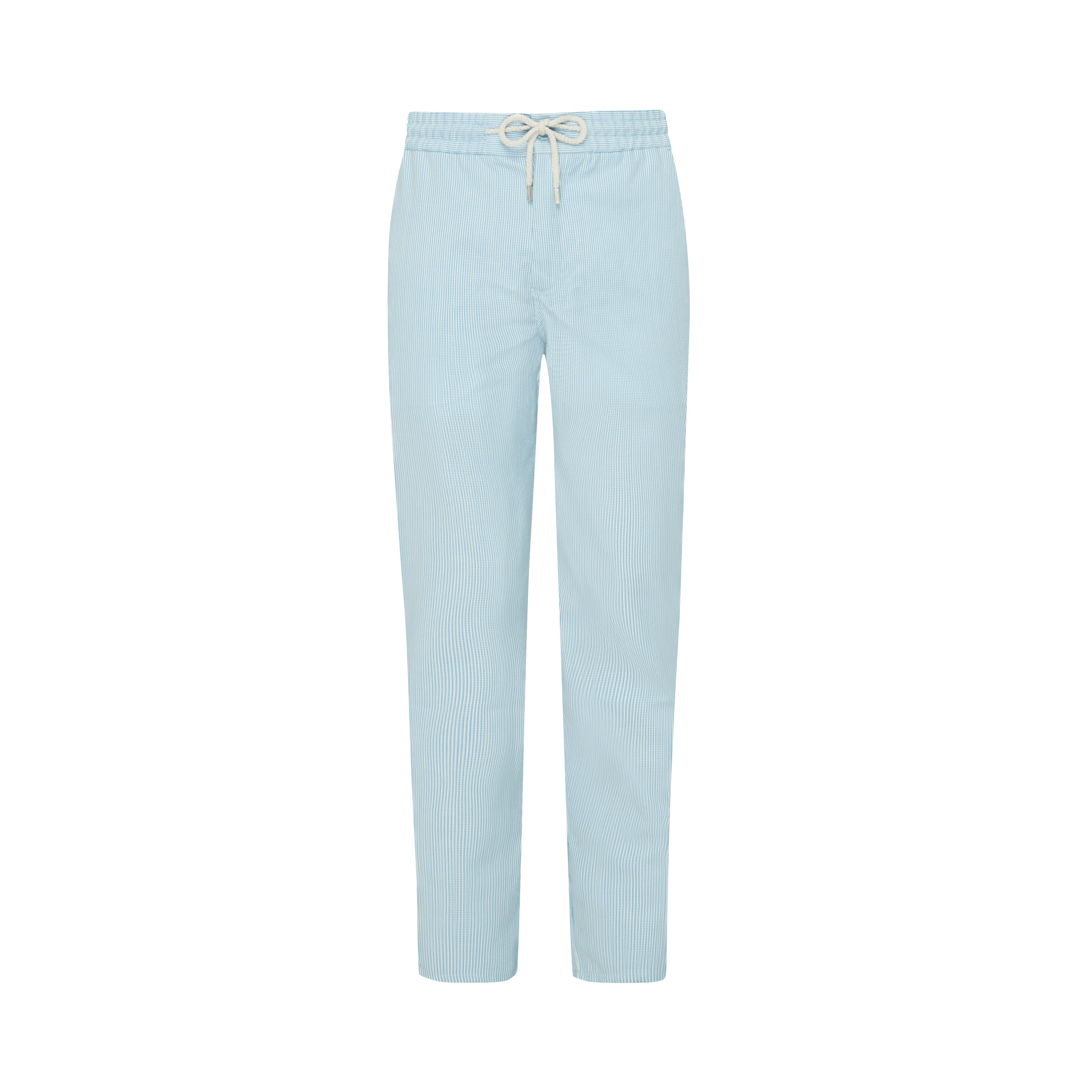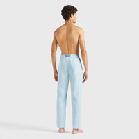 A pair of stylish trousers in cool wool and polyamide to embody the casual look. Featuring an elasticated waist and drawstring with Vilebrequin-engraved tips to enhance the sophistication. - Men Wide-leg wool pants - Two Italian pockets - Back welt pocket - Elastic waistband with tone-on-tone drawstring and metal tips - The model is 6'0.83" and wears a M size - Men wool Pants - Men regular Pants Micro Rayures Tailoring - 91% wool 9% polyamide Product Information Style: Parc Model: PRCCL346-612 Color: BLUE TOPAZ / BLUE