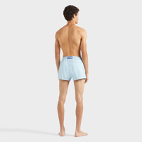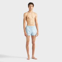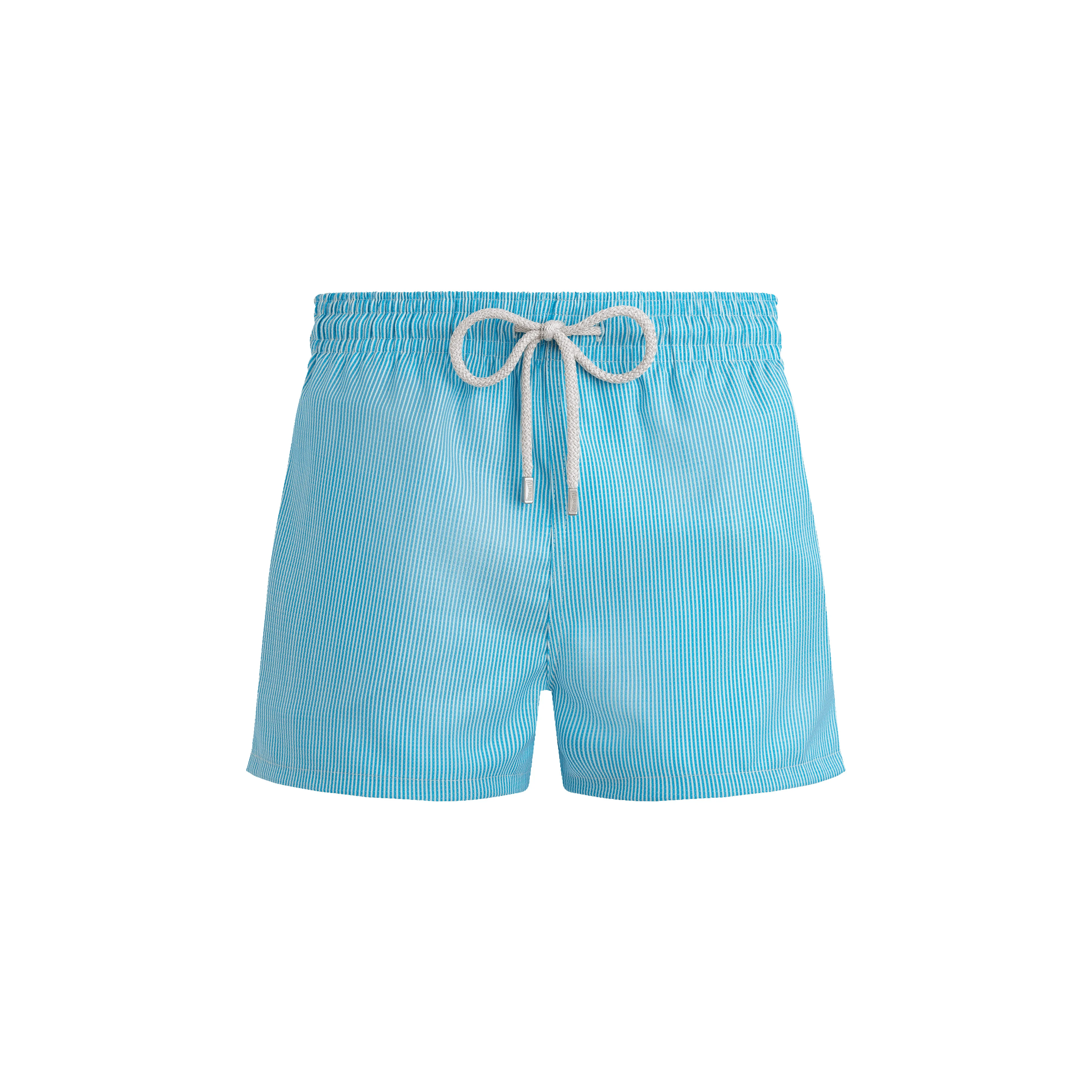 Designed to flatter, these micro-striped swim shorts sit comfortably thanks to the elasticated waist and drawstring. Vilebrequin-engraved tips crafted from zamak ensure an exquisite finish. - Short length men swimwear with elastic waistband - Elastic waistband with drawstring and zamac tips engraved Vilebrequin - Two side slits - 2 side pockets and 1 back pocket with 1 pipping closed by a velcro - Two back eyelets - Side leg length in M: 31cm - Fully lined with water-resistant mesh lining (100% polyester) - The model is 6'0.83" and wears a M size - Men Swim trunks - Men Swim trunks Micro Rayures Tailoring - 91% wool 9% polyamide Product Information Style: Milton Model: MLTCL346-612 Color: BLUE TOPAZ / BLUE