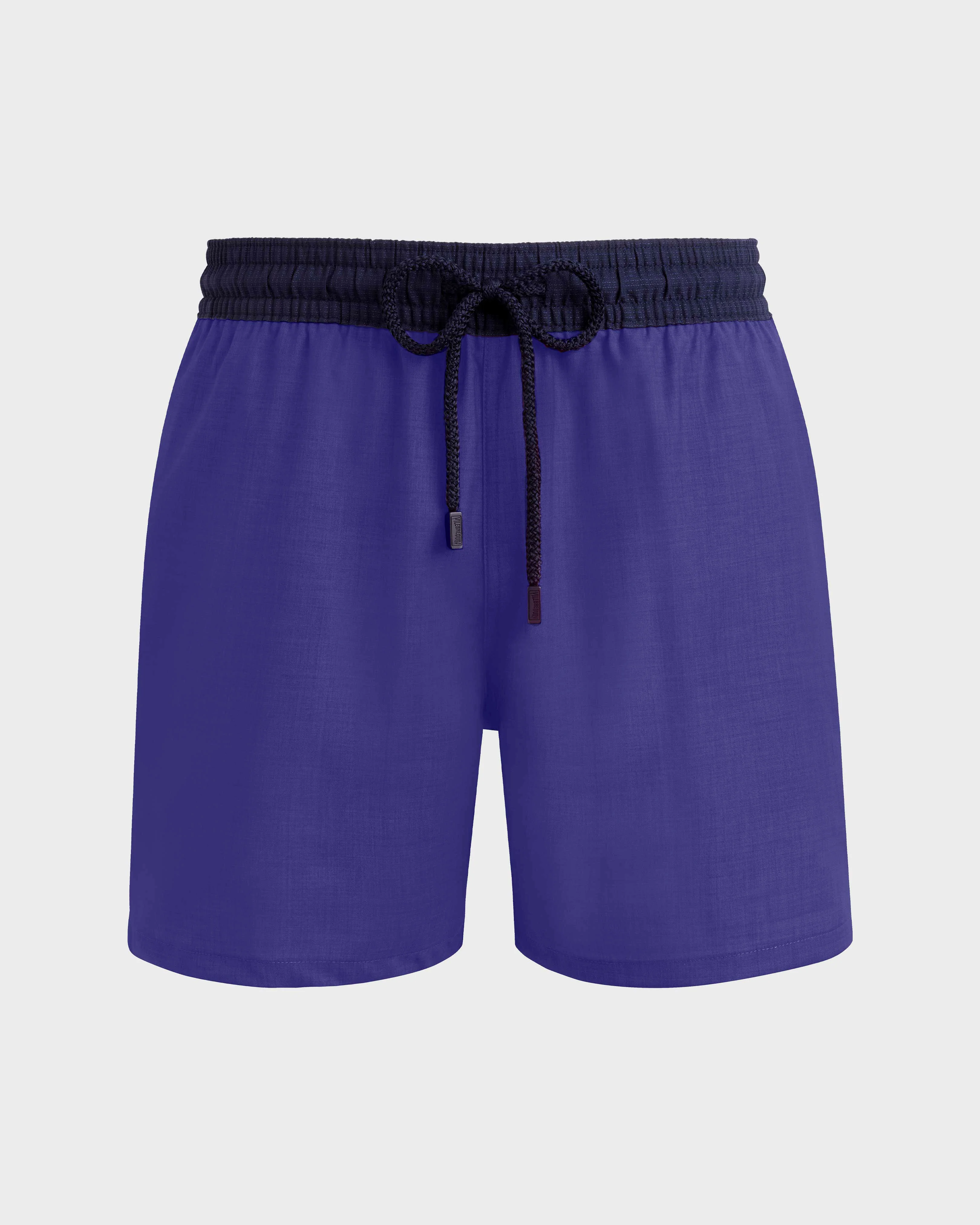 An innovative product developed in collaboration with The Woolmark Company using non-mulesed Australian Merino wool to enhance performance and reduce environmental impact. Wool's natural properties such as breathability, UV resistance, and softness make the natural fiber ideal for swimwear - Exclusive Vilebrequin swimming costume fabric in wool - Museling-free 17.5 micron pure merino wool - Elastic waistband swimwear with drawstring and zamak tips engraved Vilebrequin - Waistband in material and colors opposition, tone on tone drawstring with the waistband - Two side pockets, one back pocket with Velcro flap - Two back eyelets allow water to drain and avoid swim trunks from ballooning when emerging into water - Fully lined with water-resistant mesh lining (50% cotton - 50% polyester) - Side leg length in M: 39.5 cm - 91% Merino wool - 9% polyamide