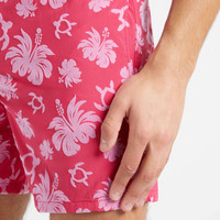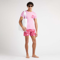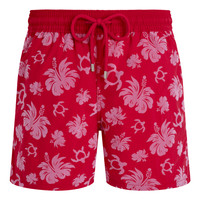 These Turtle Heart men swim trunks are inspired by a love of Tahiti. A tropical print crafted in recycled polyamide for an easy fit, offering a sophisticatied addition to holiday wardrobes. - Elastic waistband men swim trunks with drawstring and zamak tips engraved Vilebrequin - Side pockets - Hand-placement of back pocket for perfect visual alignment with swimwear print - Two back eyelets allow water to drain and avoid swim trunks from ballooning when emerging into water - Fully lined with water-resistant mesh lining (100% polyamide) - Side leg length in size M: 15.6" - The model is 74.4" tall and wears a size M - Men Swim Trunks Turtle Heart Tahiti - Men Swim Trunks - 100% recycled polyamide Product Information Style: Moorea Model: MOOBD214-207 Color: GOOSEBERRY RED / RED